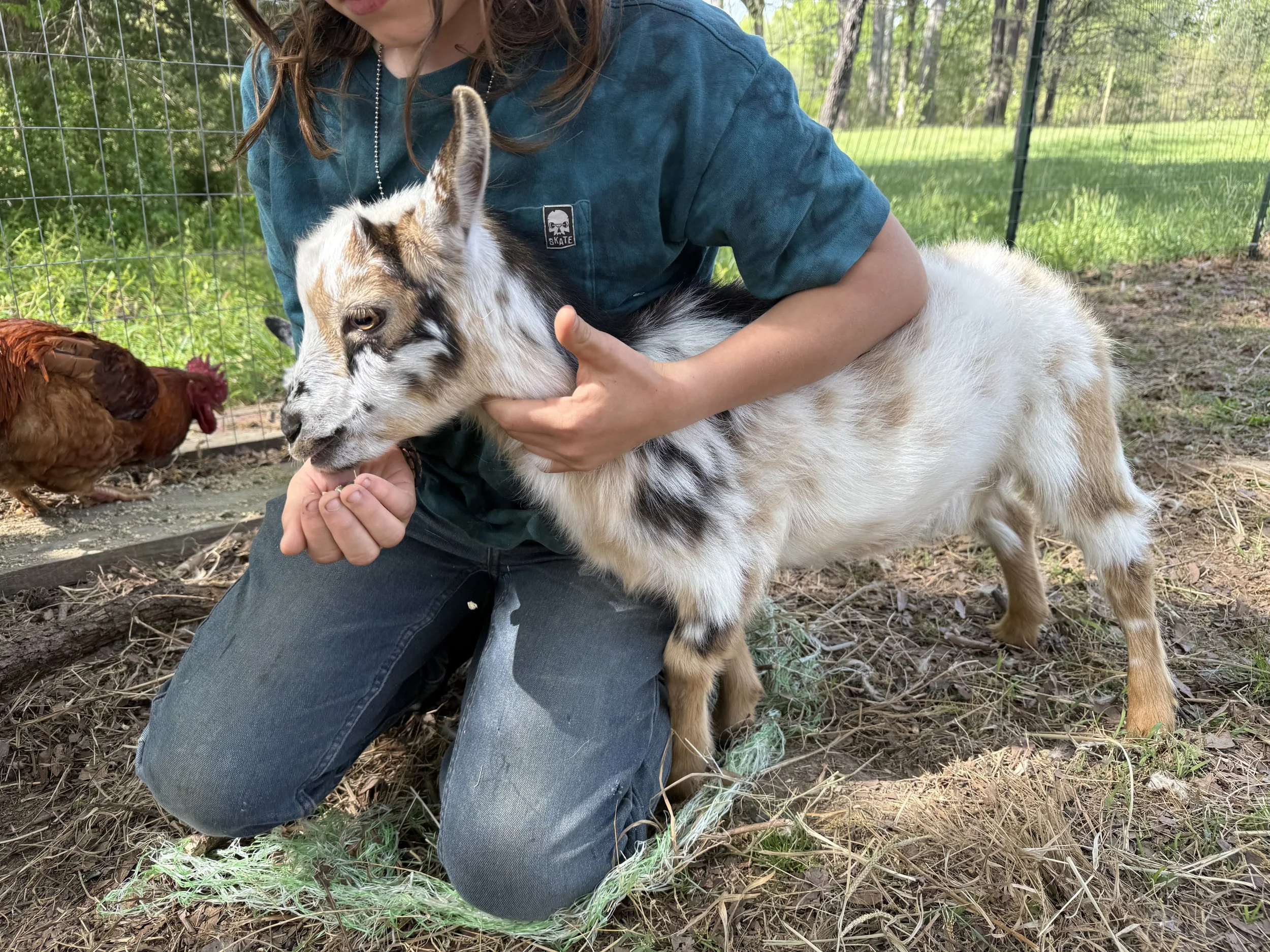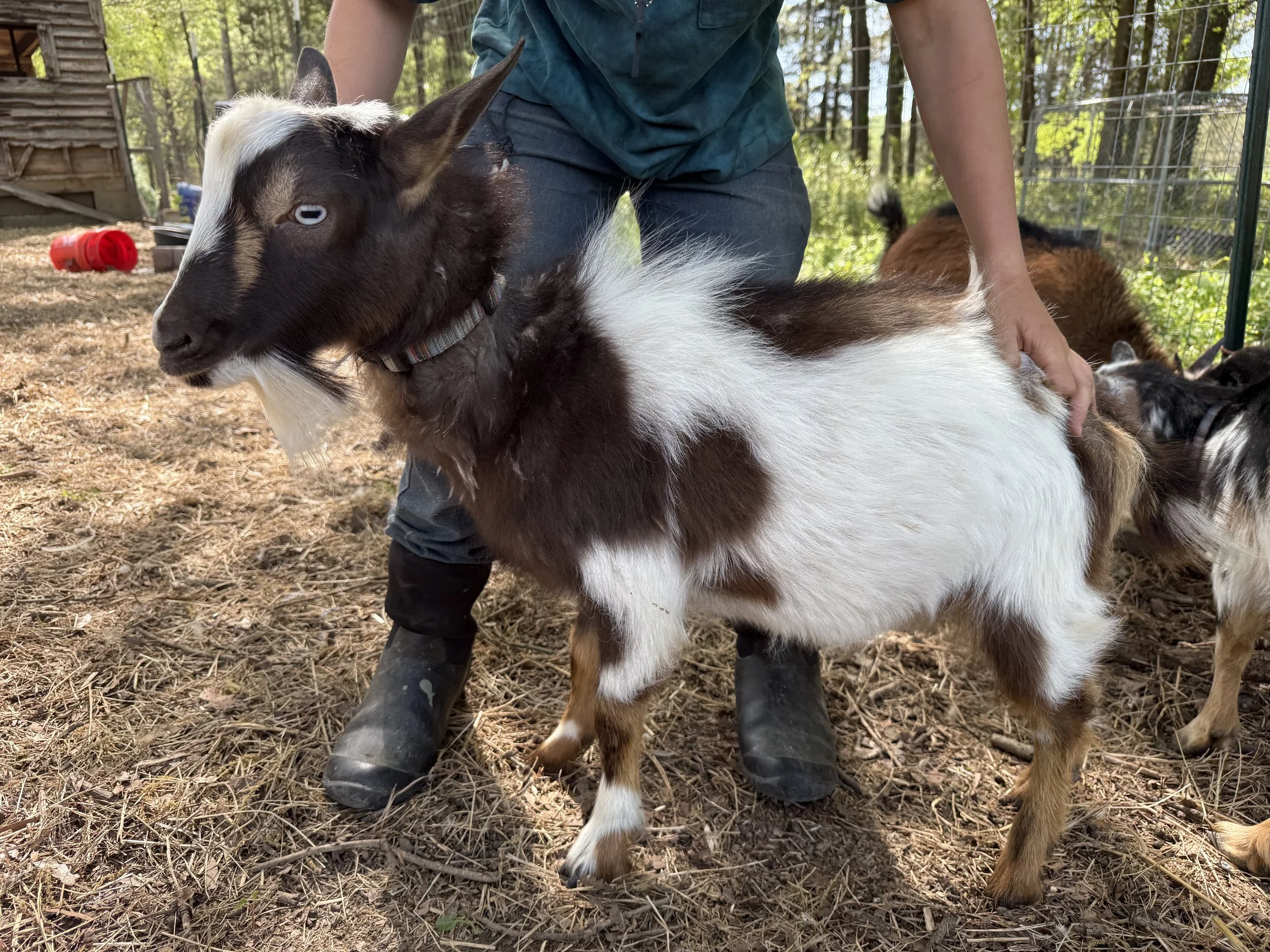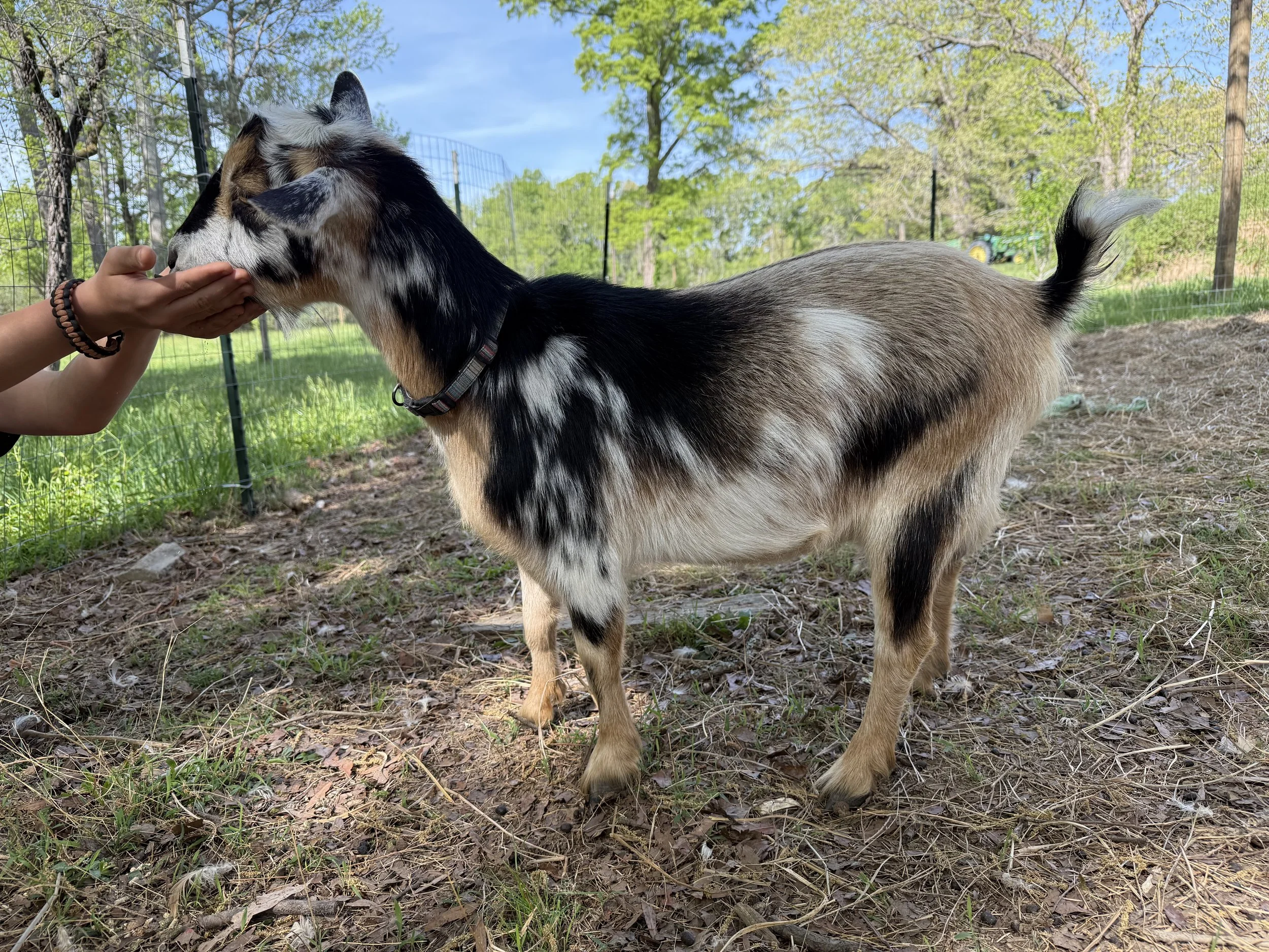 Jake is a sweet one-year old buck. He is mild mannered, naturally polled. His mother is a great milker and his father is also from great dairy lines!